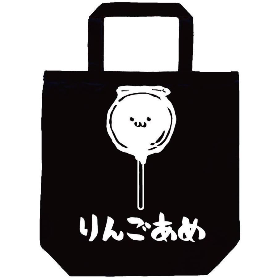 Amazon りんごあめ りんご飴 スイーツ 食べ物 筆絵 イラスト カラー おもしろ トート バッグ ネイビー オリジナルプリント 通販